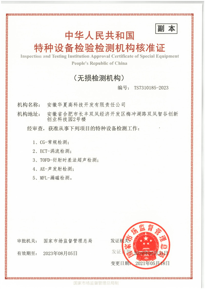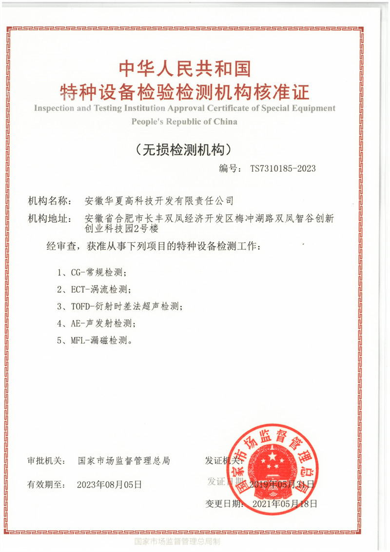 公司于1999年在合肥正式成立,注冊資金3000萬。是安徽省內規模較大、具備獨立法人資格,專業從事特種設備檢測、建筑人防檢測、技術咨詢以及科技研發為一體的第三方綜合性檢測技術機構,2002年首批獲得了由國家質檢總局頒發的《特種設備檢驗檢測機構核準證》編號007,目前獲準RT/UT/MT/PT/AE/...